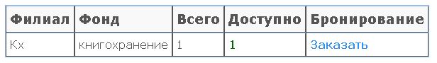 Возможность бронирования доступна из любого результата поиска, а также непосредственно при просмотре библиографического описания (экземпляра).