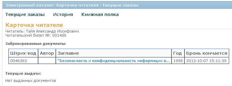 Список забронированных документов можно просмотреть в личном кабинете в разделе "Текущие заказы".
